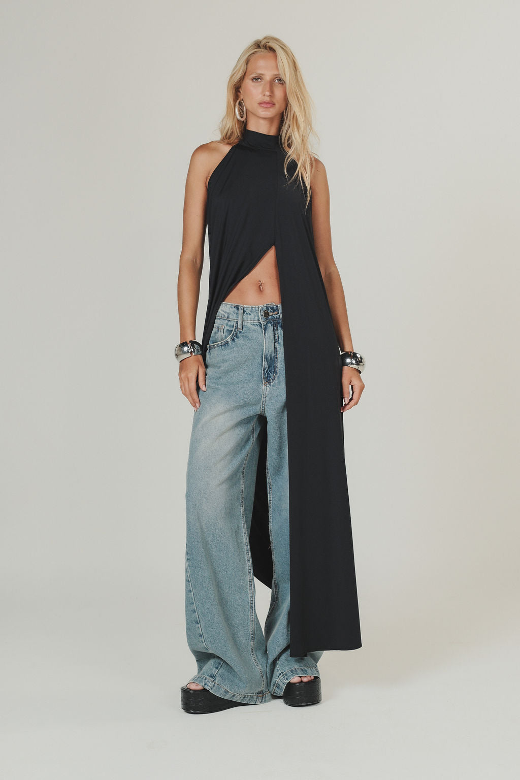 Calça Jeans Pantalona Costura Deslocada Dirty