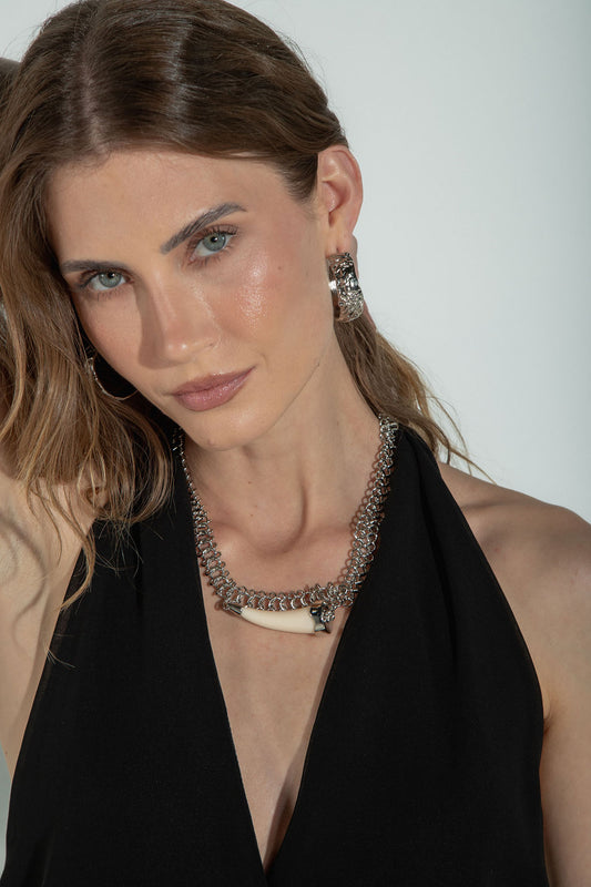 Últimas peças 30% OFFColar Dente Com Pedra Ouro Velho