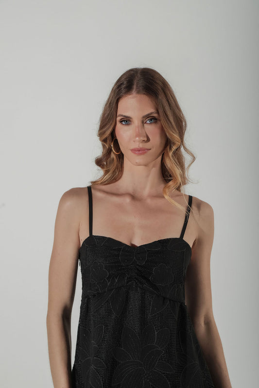 Vestido Mídi Tela Bordada Preto
