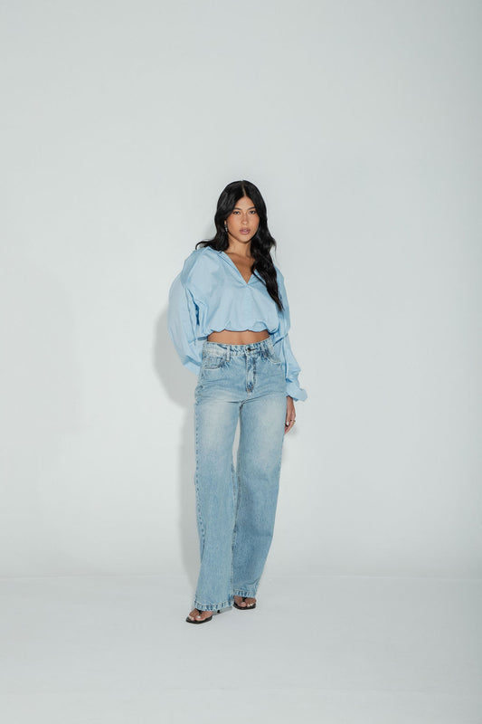 30% OFFBlusa Tricoline Bufante Azul