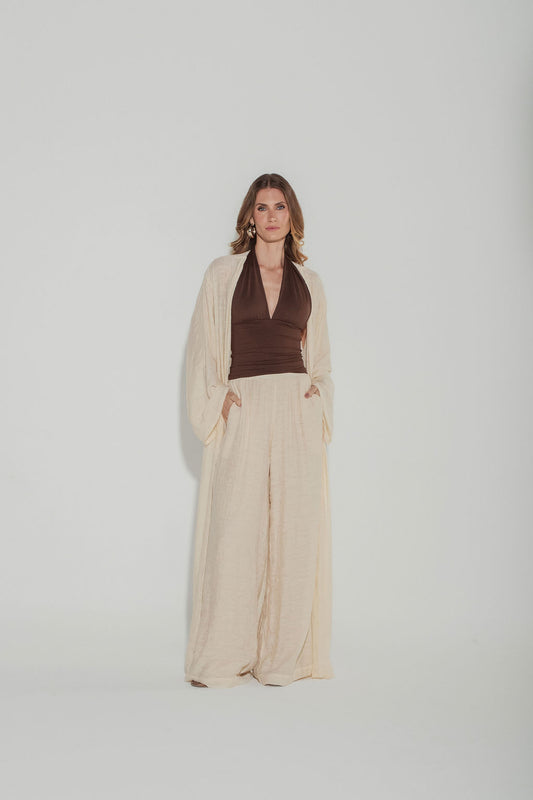 Calça Pantalona Jacquard Off White