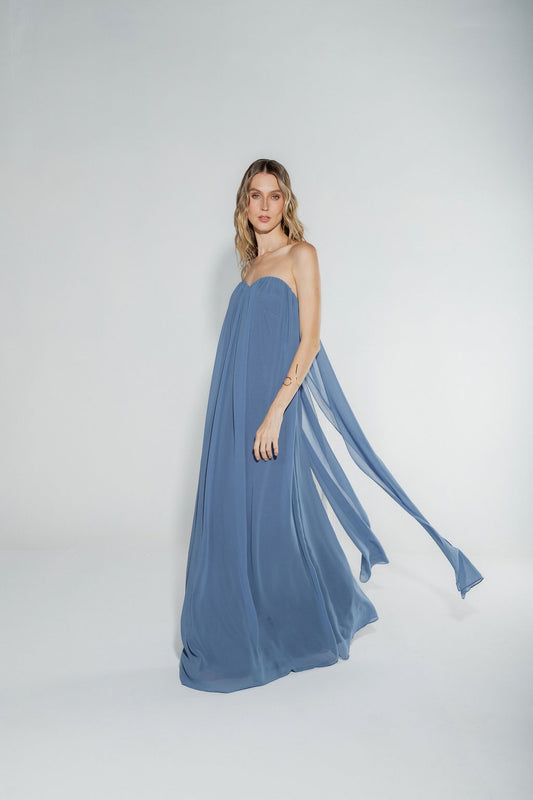 Vestido Longo Decote Coração Azul