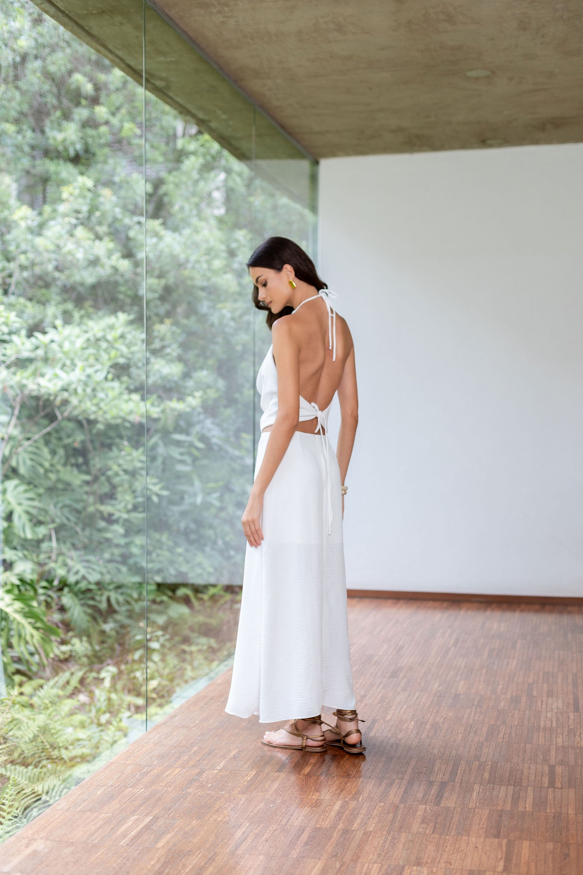 Descrição da peça: Blusa com rolotê para amarração tanto no pescoço quanto nas costas criando um decote drapeado frontal. Tamanho totalmente regulável.