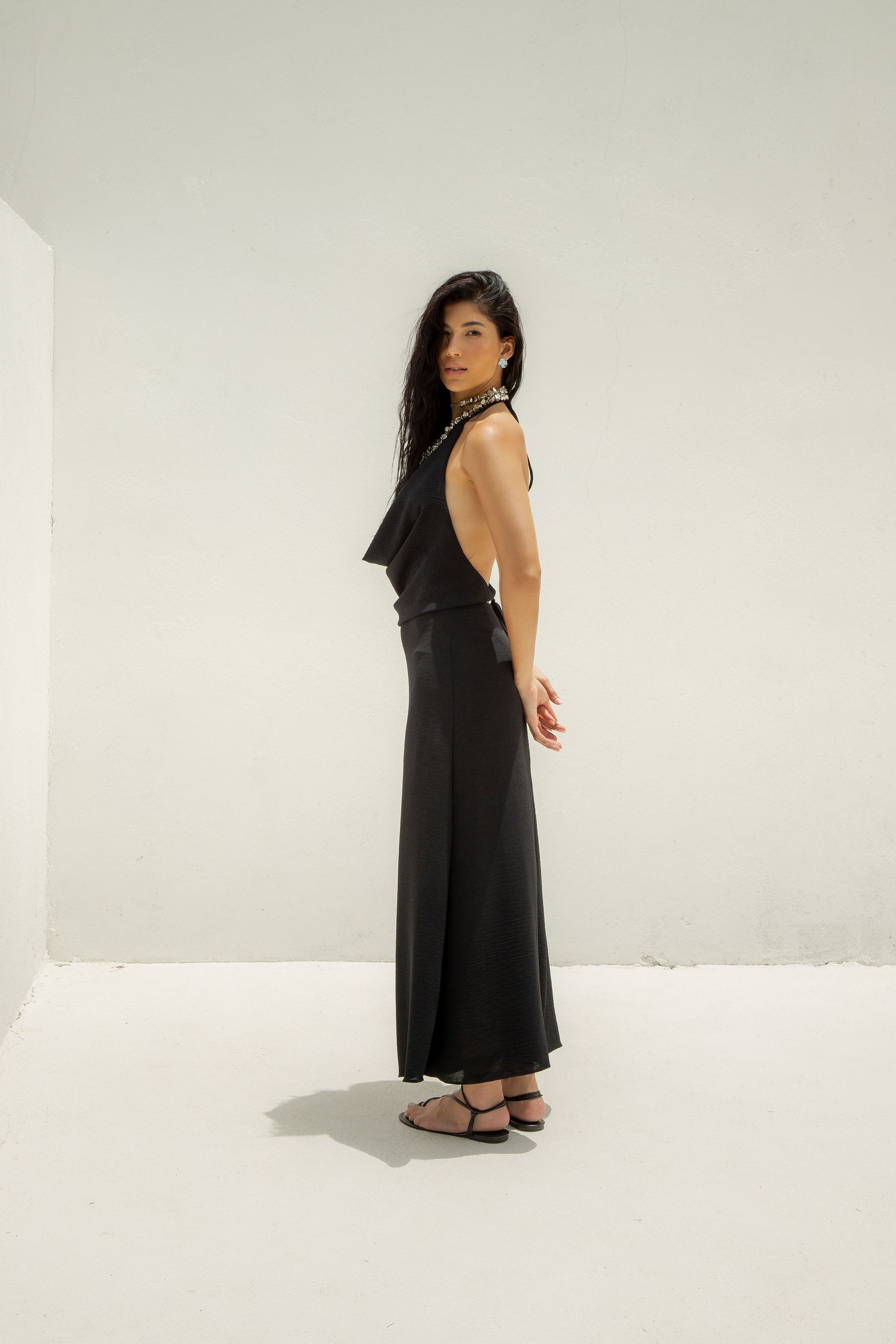 Descrição da peça: Blusa com rolotê para amarração tanto no pescoço quanto nas costas criando um decote drapeado frontal. Tamanho totalmente regulável.