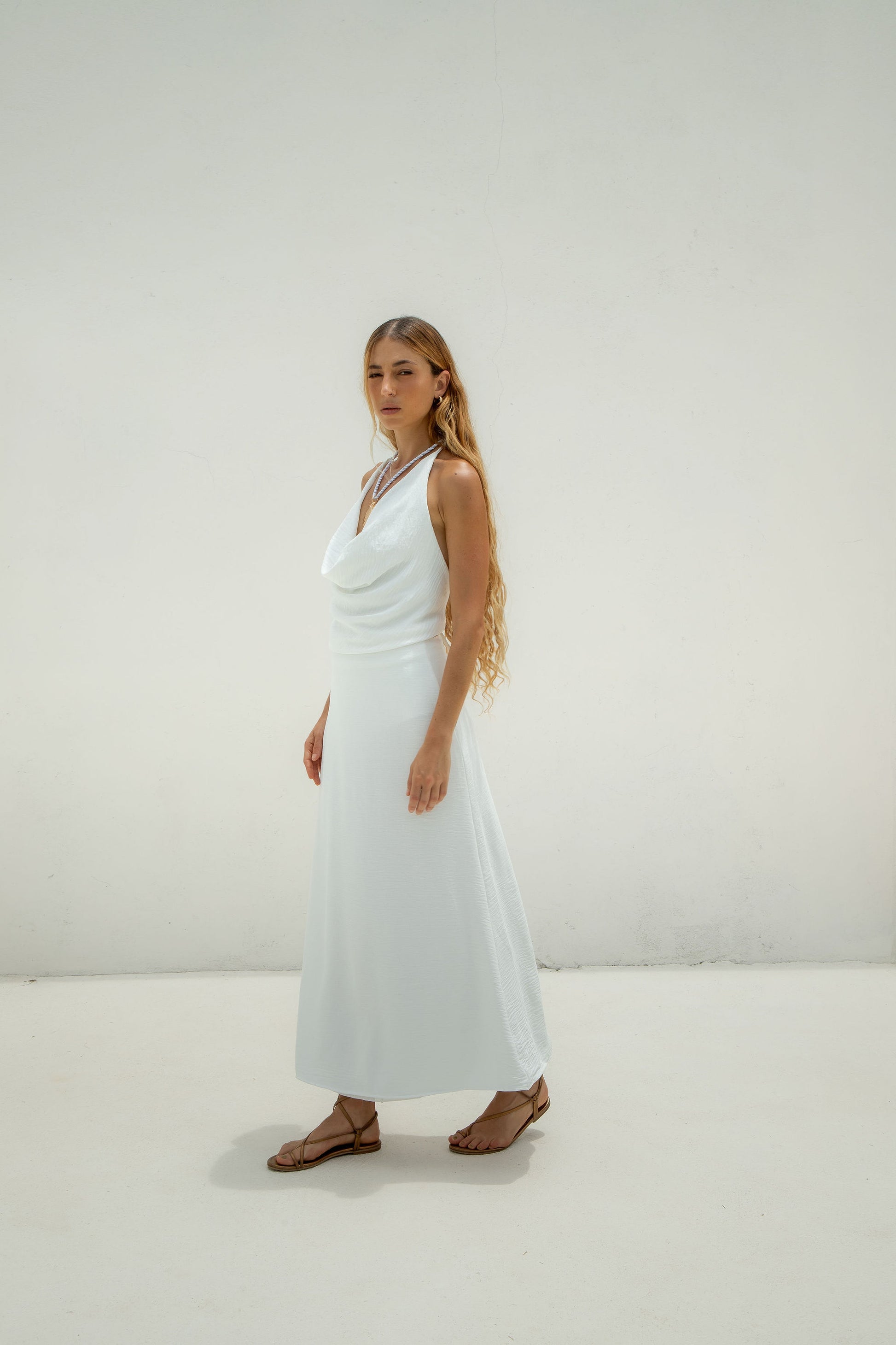 Descrição: Saia maxi midi com modelagem reta e cintura baixa, confeccionada em crepe leve texturizado. Fechamento lateral com zíper invisível. Peça forrada.