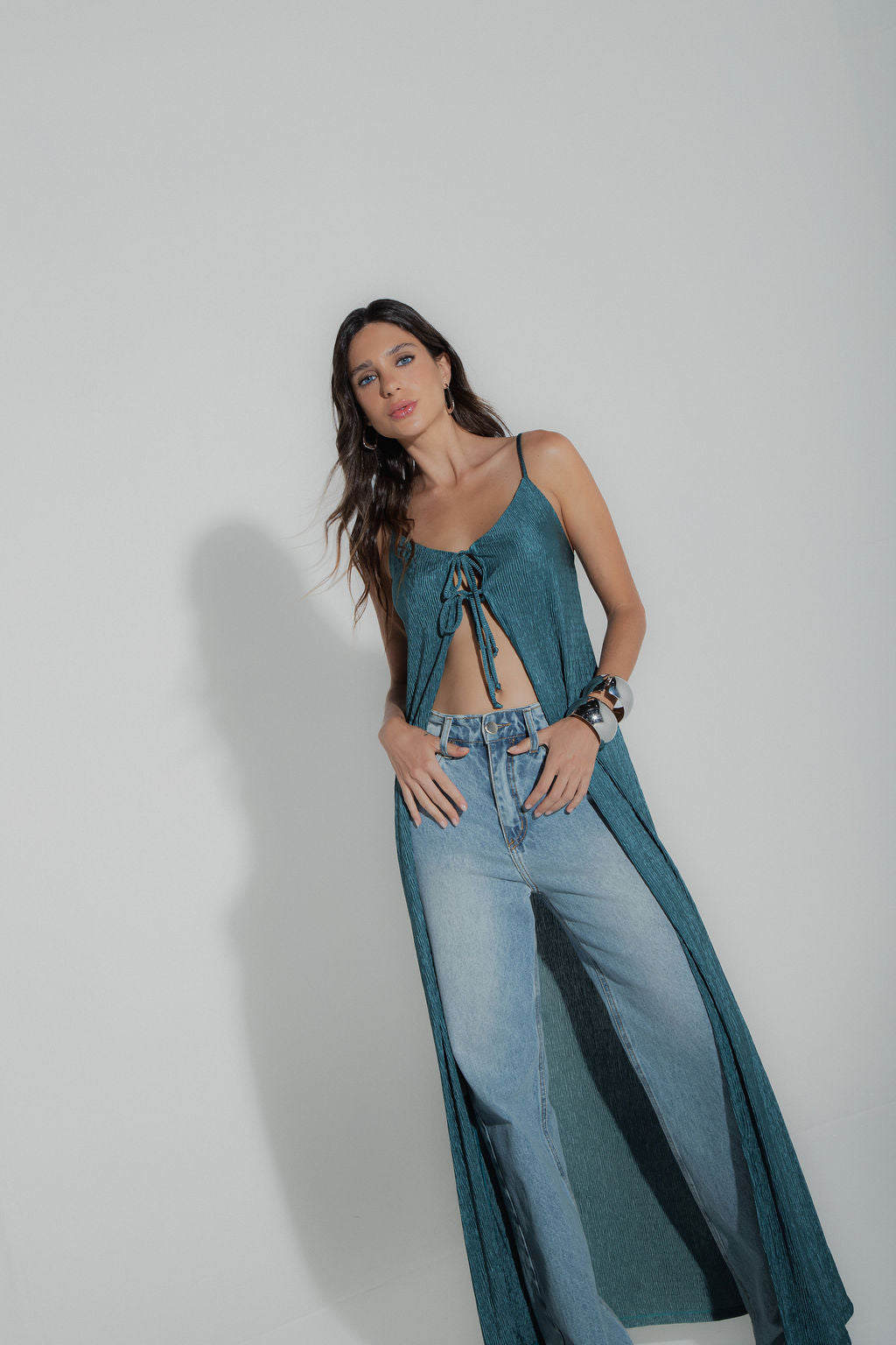 Túnica Plissada Verde Petróleo